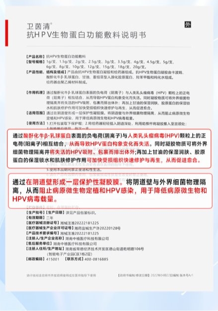 《消费提示:如何正确认识卫茵清抗HPV生物蛋白功能敷料》