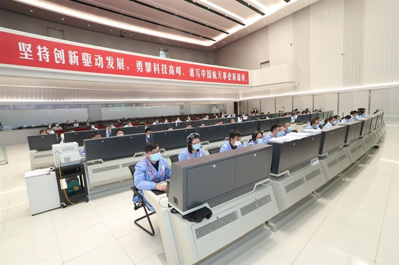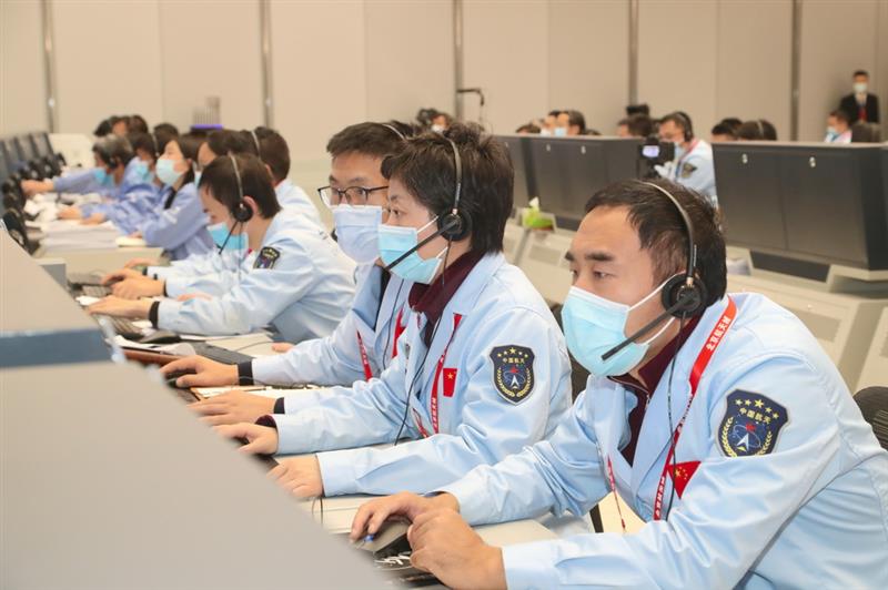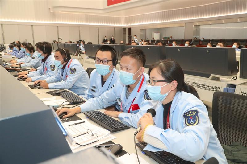 11月29日,航天科技人员在北京飞行控制中心工作。新华社发(北京航天飞行控制中心供图)