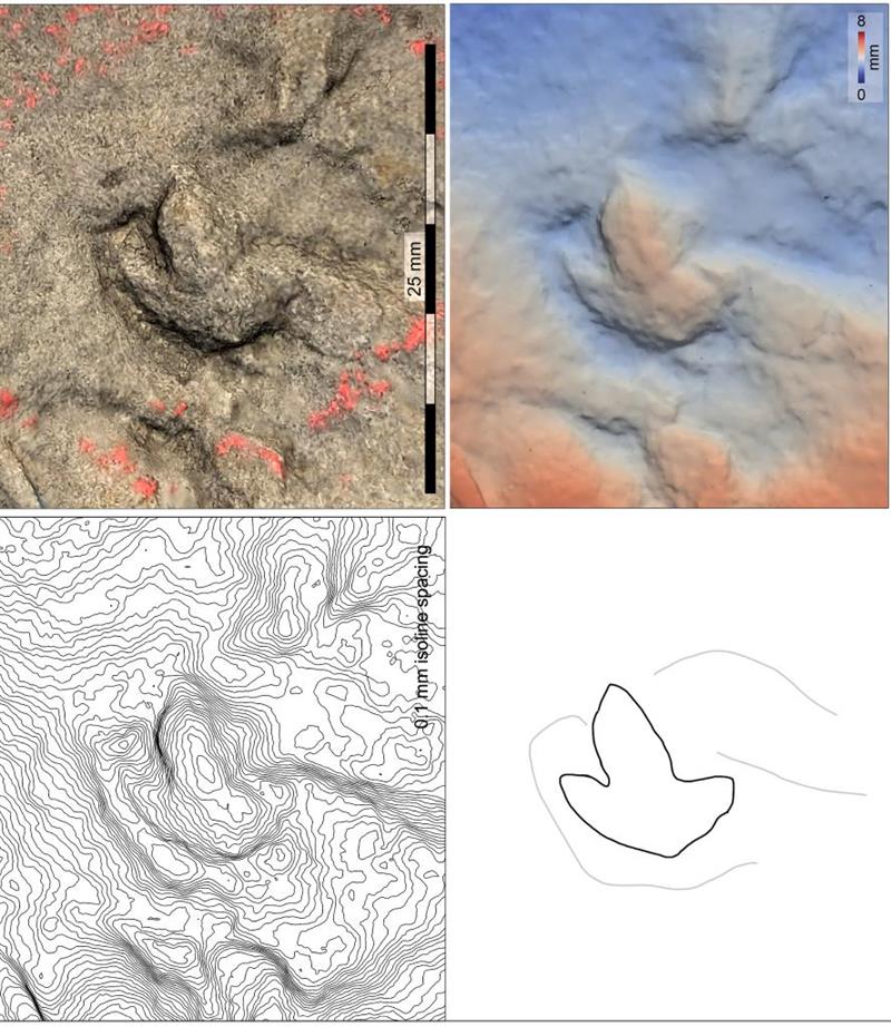 最小足迹的3D图(右上)和轮廓图(右下)。自贡恐龙博物馆供图