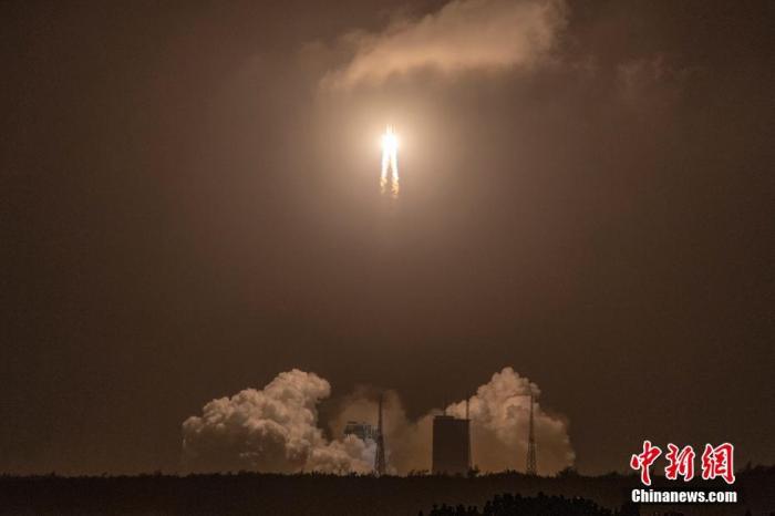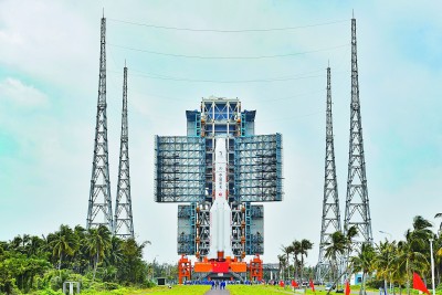 长征五号遥五运载火箭垂直转运至发射区