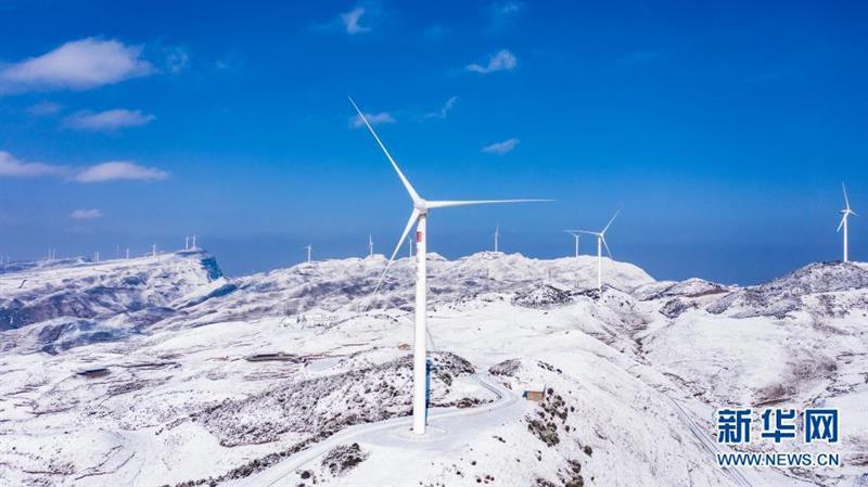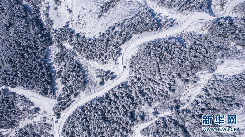1月12日拍摄的贵州六盘水盘州市坪地彝族乡雪景(无人机照片)。