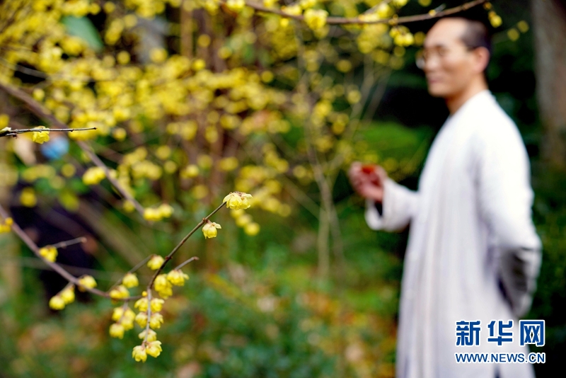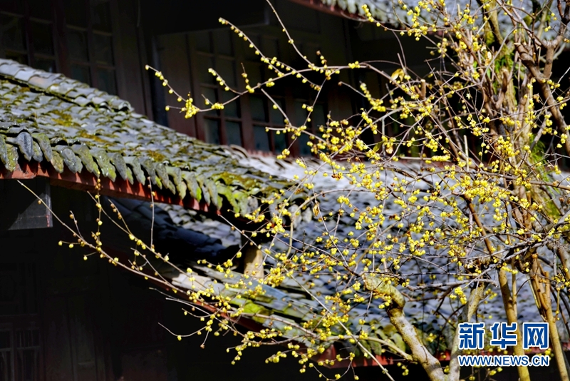 近日,峨眉山报国寺和伏虎寺的蜡梅花开了,红墙青瓦茶艺秀,花影清幽,花香袭人。(本组图片摄于1月17日 新华网黎涛摄)