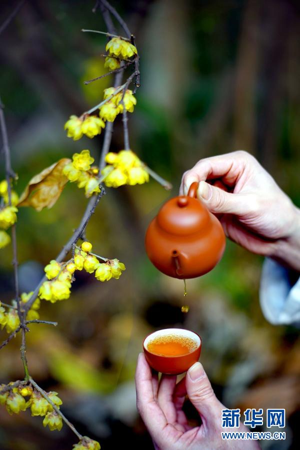 伏虎寺蜡梅树下茶艺秀。