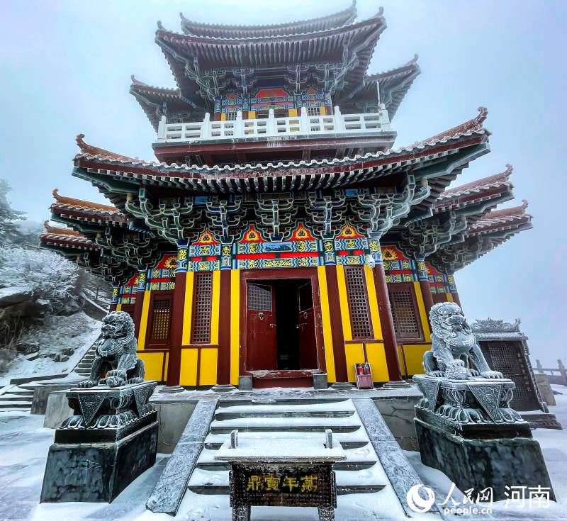 人民网洛阳1月25日电(于思远)24日下午,洛阳白云山迎来了2021年第一场雪。持续几个小时的低温降雪使得海拔2000多米的白云山披上银装,起伏的山峦绵延数千里,仿佛云海中盘旋的一条白色巨龙,气势宏伟的玉皇阁在冬雪之下显得更加肃穆庄严。从中原极顶玉皇顶向下望去,云海莽莽,峰起云涌。