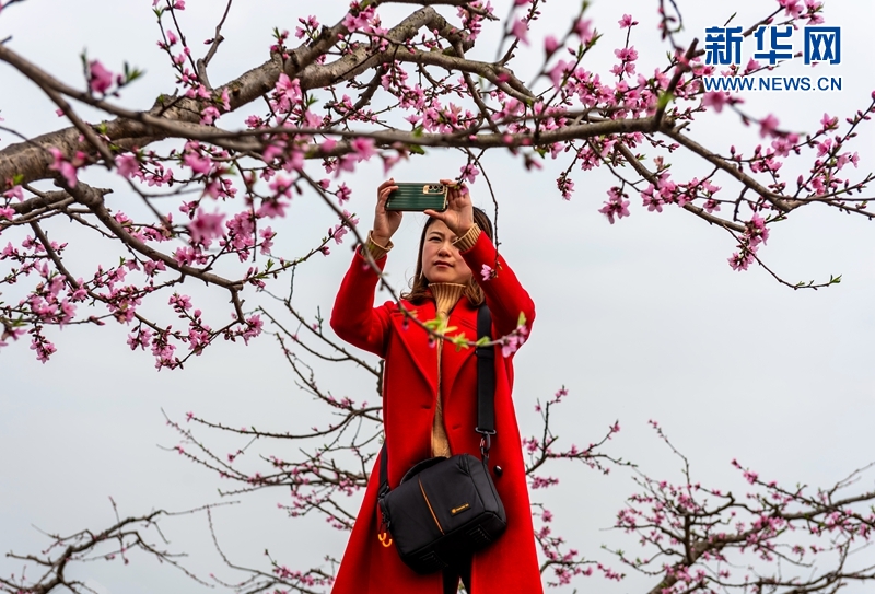 3月5日,绵竹桃李蹊的桃花盛开,吸引游人前来拍照打卡。新华网发(周乐鹏 摄)
