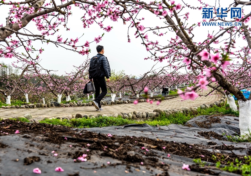 早春时节,四川省德阳绵竹市汉旺镇龙腾桃李蹊花影摇曳,春光无限。