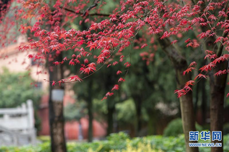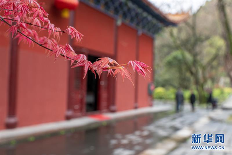春天里,春风送暖,适宜的温度催红了广西桂林市全州县湘山寺内的“春红枫”,景区内的观赏枫树生长出红红的嫩叶,迎来上佳观赏期,成为春季一道特别的风景。