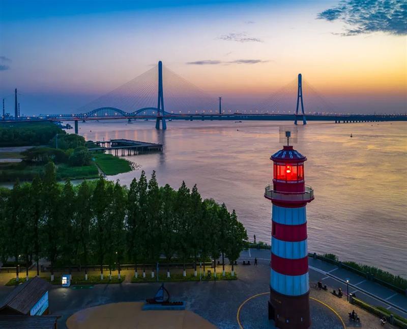 除了网红灯塔,这里还能看到长江三桥。静静的趴在栏杆上,看太阳的余晖洒满天际,再看它慢慢落下,是一件特别幸福的事。(李晓村 摄)