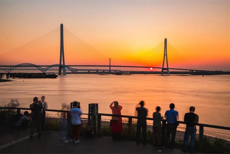 不知何时,鱼嘴湿地公园俨然成为南京最美夕阳的代名词,红白相间的灯塔,也成为了网红打卡圣地。日落时分,夕阳西下,望天边云卷云舒,看淡淡橙色尽洒江面,宽阔的江面自带豪迈之气,柔和中带着梦幻,仿佛是治愈一切的美好存在。(李卉华 摄)
