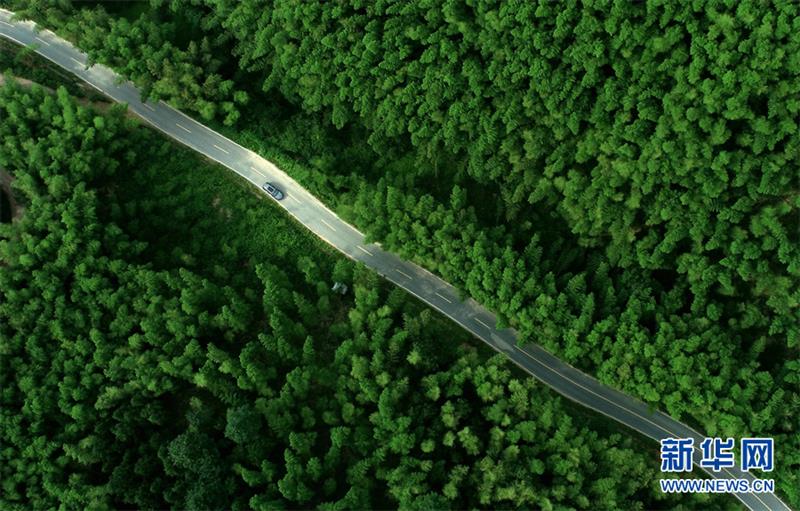 5月31日,车辆行驶在安徽省合肥市庐江县龙桥镇凌安村绿意葱茏的公路上。