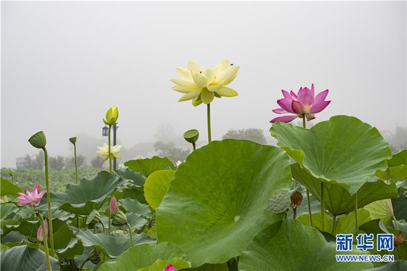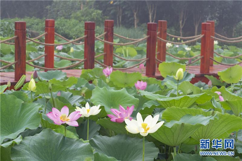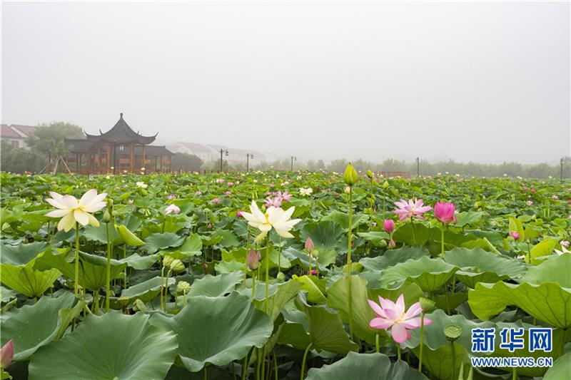 入夏以来,地处大别山腹地安徽省六安市霍山县与儿街镇大沙埂村的千亩荷花进入盛花期。各色荷花次第绽放,姹紫嫣红令人赏心悦目,给美好乡村增添了一道亮丽的风景。新华网发(徐程 摄)