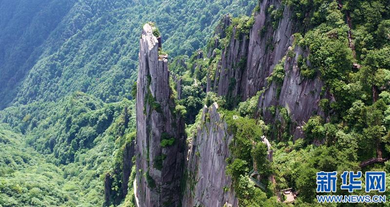 俯瞰羊狮慕景区,群峰叠嶂,苍翠秀丽。新华网 王晓震 摄