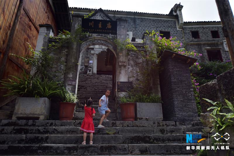龚滩古镇老街上的川主庙。古镇上有许多保存完好且颇具规模的明清建筑群,诉说着它久远的历史。新华网发(陈碧生 摄)