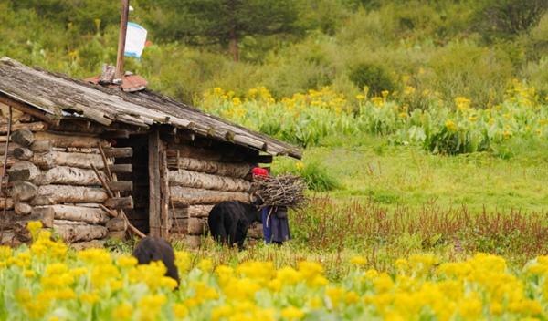牧场里开满了大片黄色的花,藏族群众喜欢叫它们酥油花,约上三两好友,徒步亚拉青波牧场,畅游在花海当中,听凉风在耳边喃喃细语,也是别有一番滋味。
