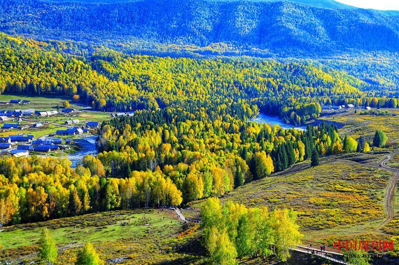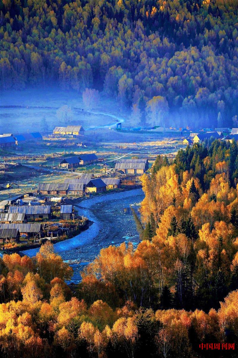 有人说,如果秋天去北疆,可以不去天山天池,但禾木村是一定要去的。禾木是一个童话田园诗般的村庄。当秋季一到,禾木村是五彩的:红、黄、绿、褐色,层林尽染,配上阿勒泰山的皑皑雪峰,简直宛如油画般的美丽。禾木河静静地流淌着,牛羊和马儿在牧场里悠闲地漫步着,笔直的白桦树被染得一片金黄,再加上那炊烟袅袅,一切都让人感到心情舒畅,所有的烦恼都随着最美的秋色烟消云散。