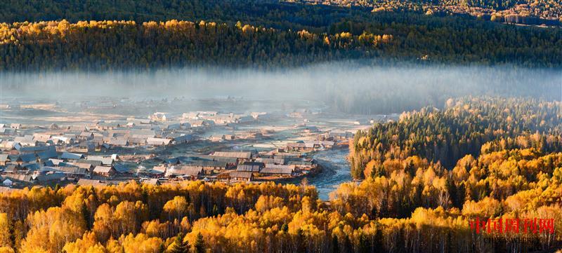 禾木村在喀纳斯河谷地带,山清水秀,环境优美。清晨时分,木屋中灶烟袅袅升起,弥漫在田野,而低温又将空气中的水蒸气凝结成雾,呈现出别样的朦胧之美。这是最能代表禾木村美景的名片。太阳升起后,阳光打在树叶上,更是金灿灿的。清晨村子里,河两岸的白桦树,还有那美丽的倒影。村民赶着马群去放牧。由冰山融水汇成的喀纳斯河是多么清澈呀,它流经禾木及沿途村庄。