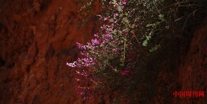 这是在青海东部大山中,一种科巴山村特有的“羊羔花”,每年初夏开始便盛开在田头的山埂上,开在无人的赤裸红山崖边,风一来便摇曳着自己的碎碎粉粉,倔强而艳丽。