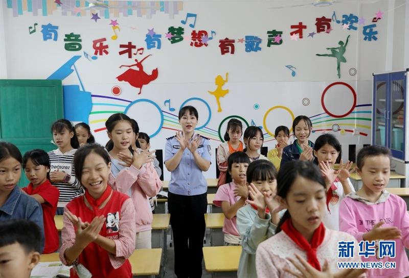 许艳璐是国家移民管理局江苏边检总站的一名民警。今年以来,国家移民管理局9个边检总站先后选派177名警察到三江县7个乡镇48所学校开展支教服务活动,教学英语、体育和音乐等学科,有效缓解三江乡村师资的结构性短缺,进一步提升贫困地区教学质量,促进贫困地区教育扶贫。(龚普康)