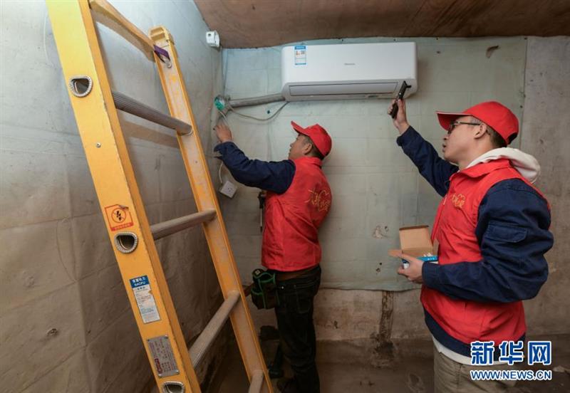 11月23日,志愿者在余国春家中为他免费改造用电线路,安装新开关。新华社记者 徐昱 摄