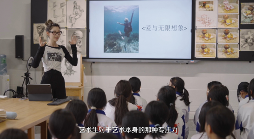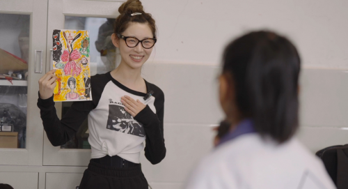 在说到画画这一主题,痞幼表达自己对美术的独特见解。她认为,美术本身需要创意力,除了享受制作过程中的专注,“个人风格也是个很重要的东西”。因为自己在学生时代没有老师教过如何去创造属于自己的艺术品,所以痞幼更想为他们撑起一把名为创意的伞。她毫不吝啬地向孩子们分享自己的独家感悟,“你画画看到这个球是圆的,你可以不把它画成圆的,在你的世界里它可以是一个五角星。”