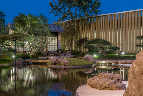 特别的是,作为城市里的公共艺术空间,这间24小时书房面向公众免费开放。大部分图书都可以免费借阅,不收押金,读者凭信誉实现书籍的借阅与归还。在书房里穿过一排排书柜,来到玻璃幕墙前,雅致的书斋庭院和静寂的枯山水庭园映入眼帘。室内灯火可亲、书页生香,室外的青松和白砂予人平静,看久了,仿佛自己也化成光,坠入周围的光之海。若是夜晚前来读书,书房的工作人员会送上一碗免费的暖胃汤羹。