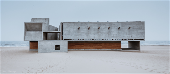 这是一座独自伫立在海边的图书馆,没有车道和小径,只能光脚踩着沙,一步一个脚印,走上几百米才能抵达。