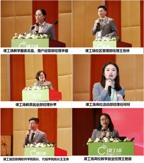对于高校业务,高校活动部经理任珂珂从高校市场拓展,高校咨询转化,以及高校线上维护三个方面进行深入分析。她认为,针对B端合作,要从解决高校痛点入手,而对于C端招生,则要以线下+线上维护着手。互联网软件学院院长、代码学院院长王玉伟则从2020年定位与布局,体系及不同类型中心实施产品重点三方面介绍课工场高校核心产品。他表示,课工场高校专用产品是根据高校教学体系,并结合中心运营情况、盈利空间打造的,通过利用高校专用产品可以与B端达成合作,抢占B端市场,进而扩大C端招生。高校教学就业经理王艳丽针对市场教学、校内教学、中心教学三个不同类型讲解了当前教学面临的挑战及应对办法,并对就业问题与解决方案,完善体系及中心场景落地进行了讲解。