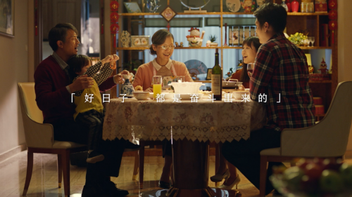 此次获得黄河奖银奖的《奋斗》是碧桂园集团在2018年推出的公益广告。片中主人公为了让家人过上更好的日子,离开家乡到城里打拼闯荡,下过工地、当过搬家工,却不怕苦、不怕累。他常常想起家乡的爹娘和妻儿,告诉自己,要为他们拼出一片天。伴随着改革开放的春风,他终于成就一番事业,拼出全家幸福,此刻所有的辛劳都不足为道……这是碧桂园推出的宣传片《奋斗》中的情节。该片通过描述普通人拼搏奋斗终获幸福的故事,提出“幸福都是奋斗出来的”,进而向这个伟大的时代、向每一位奋斗者和追梦人的致敬。