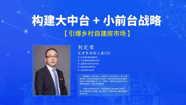 刘定荣提到,乡村农房市场目前正在发生翻天覆地的变化,逆城市化将成为未来趋势,随着精准扶贫战略进入尾声,乡村振兴战略将全面开展。政府对乡村农房市场管控会进一步加强,行业准入门槛自然也将大幅提高,乡村农房产业将走向更规范化、更有序的发展道路。而通过构建直面市场,行动更加高效敏捷的“大中台+小前台”发展战略,定荣家可以将优质的服务体系在中国广大的乡村地区更有效的推广开来,全面助力乡村振兴,建设中国美丽乡村。