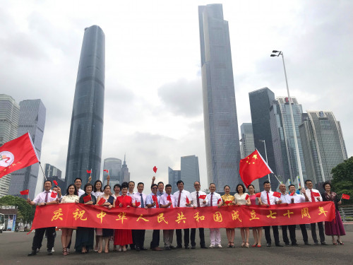 为献礼建国70周年华诞,青商会精心策划了《我和我的祖国》音乐视频拍摄,七月二十七日,骄阳似火,热浪腾腾,广州青年商会会长罗军带领六十多位企业家在近40度的高温下,在著名歌唱家、副会长唐彪的带动下,大家热情洋溢地挥动国旗高唱《我和我的祖国》,企业家们脸上绽放着灿烂的笑容,在广州中轴线上,在姹紫嫣红的花海和婀娜多姿的“小蛮腰”的映衬下,留下了青商人热情活力的最美画面。