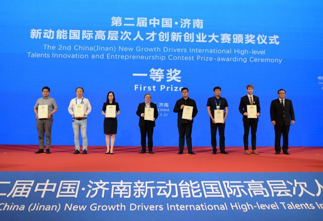 获得一等奖的7个项目分别是宋海锋团队的轨道交通车车通信精准测距防护系统,李新天团队的嘀哩哩科技、浪潮集团合作落地济南人工智能云计算项目,别谢茨基•斯特潘•斯捷潘诺维奇团队的轨道交通用耐低温尼龙材料研究及产业化,张立人团队的超宽带定位追踪、通信和多传感功能自组网络应用于危险复杂环境的紧急救援项目,张坚团队的肠道菌定植素项目,Victor LING团队的新一代低毒高效胆汁酸展望,和Raynes Jared 团队的MilkPLUS促进大脑发育及肠道健康的K-酪蛋白乳制品项目。