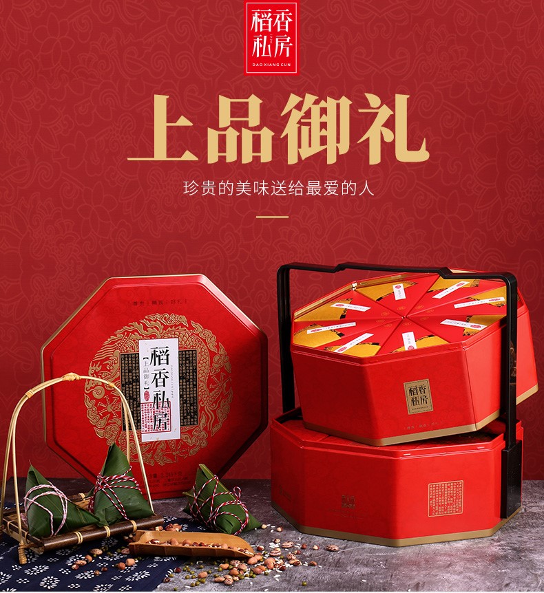 稻香村集团旗下“稻香私房”品牌主打高端定制风格,更具独创性、定制性及手工性。其粽子产品选料上乘,工艺考究,纯手工包制,传承了苏州地区经典手工粽的精髓。