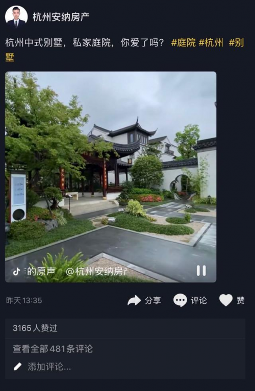 在抖音有过视频走红基础的高峰,与新入局的同行们比起来,太有先发优势了,在其他家还在摸索视频拍摄方式的时候,高峰的云看房视频已经有了很鲜明的风格特色。