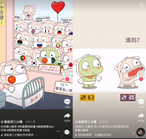 漫画三分糖的博主平时负责一家漫画公司的商业内容,特殊期间,公司全员放假,他闲来无事便开始在自己的抖音账号上持续更新漫画作品,此前这个账号主要用来记录他的画画视频。