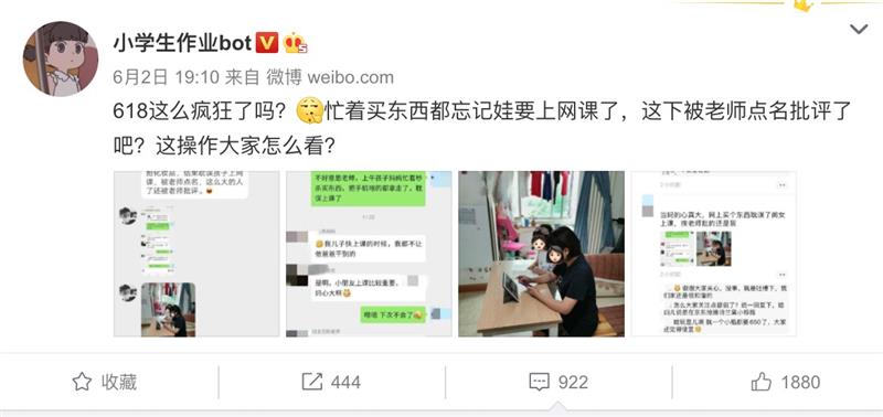 这一届父母,真的快被网课逼疯了。为了孩子的学习,许多父母都在“保姆式”陪伴孩子上网课,然而有些一些父母心却很大!最近,网上就有一个妈妈因为京东618的秒杀抢购,竟然耽误了孩子上网课,令无数网友捧腹不止。