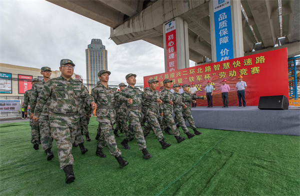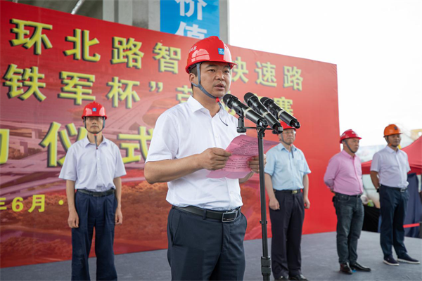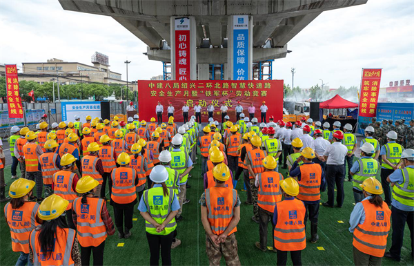 6月3日上午,古城绍兴,细雨绵绵。在中建八局三公司基础设施分公司绍兴二环北路智慧快速路建设现场,彩旗招展、热情高涨,“迷彩服”、“安全帽”、“绿马甲”整齐列队,基建火箭军厉兵秣马、严阵以待。在昂扬的音乐声中,项目安全生产月暨“铁军杯”劳动竞赛启动仪式正式开幕。