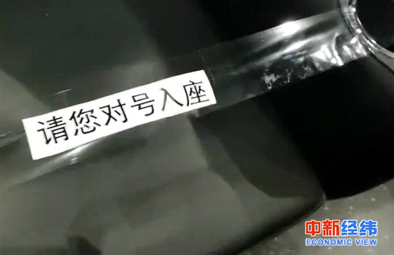在影厅内,中新经纬记者注意到,为保持观影人之间的间隔距离,工作人员已用胶带将三个座位连在一起,胶带上提示“请您对号入座”。
