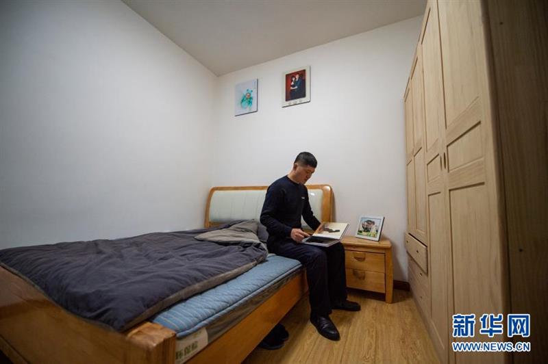 2021年1月9日,史先强在洛古河夫妻警务室的宿舍里翻看自己和妻子的写真集。新华社记者 谢剑飞 摄