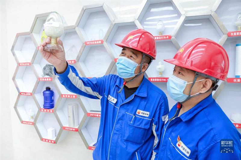 2022年9月5日,在中国石油辽阳石化公司,员工在查看产品。新华社记者 杨青 摄