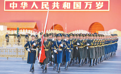 1月1日清晨,北京天安门广场举行隆重的升国旗仪式。