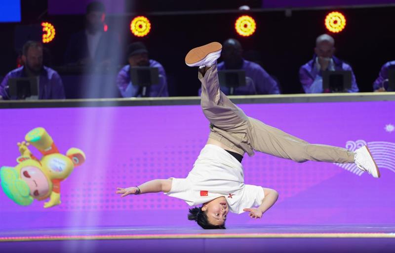 10月7日,中国选手刘清漪在霹雳舞女子组比赛中。新华社记者 王楷焱 摄