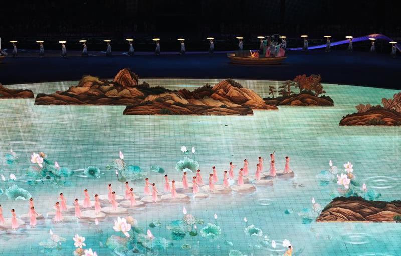 9月23日,演员在开幕式上表演。当日,第19届亚洲运动会开幕式在杭州举行。新华社记者 杨磊 摄