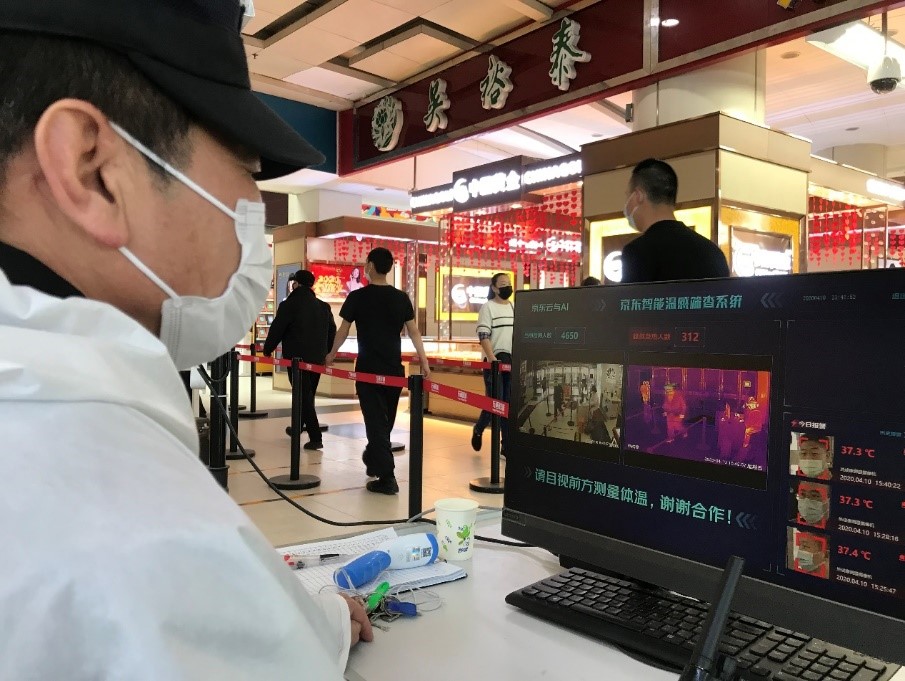 2月中旬,京东智联云“无接触智能温感系统”助力海淀区金四季购物中心复工复产