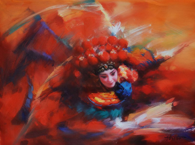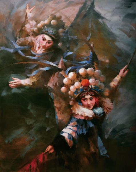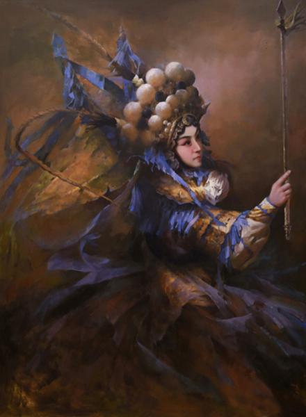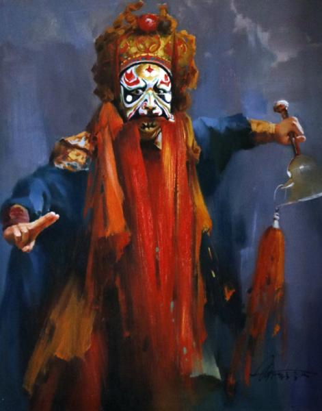 拥有独树一帜的技法之后,他又在独成一派的主旨酝酿上,开启了富有文化谋划的探索进程,用油画构绘京剧人物,用油画的技法表现东方文化的魅力。师夷长技而惠东方神韵的绘画梦想,因他的进取幻化成真,从他创建的最佳文化沟通渠道里生发出来的艺术珍品,皆是韵从东方来,功依奇技成,富有东方文化的气度和气韵,而这些气度和气韵的抒发方式,不仅仅是国人能感悟得到,对中国文化充满兴趣或是并不了解的外国朋友也是一睹而心悦,能看得懂,能看得深,能看得入迷,这就是他的油画技法嫁接于中国传统文化渲染的巨大成功。