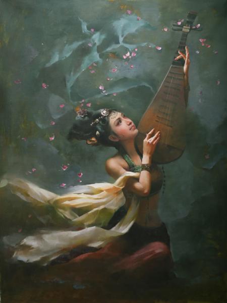 他本身是一位技能相当专业的油画家,经由油画技法体系的全能训练,再加上个人对色彩拟意动态的极致才华,让油画因彩韵而神跃,技法不仅仅纯熟,并且奇异。所以,仅仅站在专业创建的层面来看,他的油画一经掠眼,就是奇光异彩,有大显吸引的艺术陶冶效果