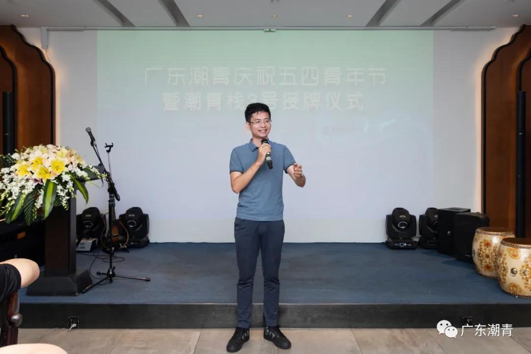 广东潮青副主任、5月份轮值主任王锐旭致辞,对历届潮青的付出、奉献表示感谢,将继续和大家共勉,传承潮青的家国情怀、经验知识,激扬 青春活力、创造力,不断进步 。
