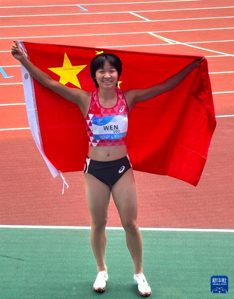 这是2023年10月25日,文晓燕在杭州亚残运会女子200米T37级决赛中夺冠后庆祝。新华社发(中国残疾人体育运动管理中心供图)