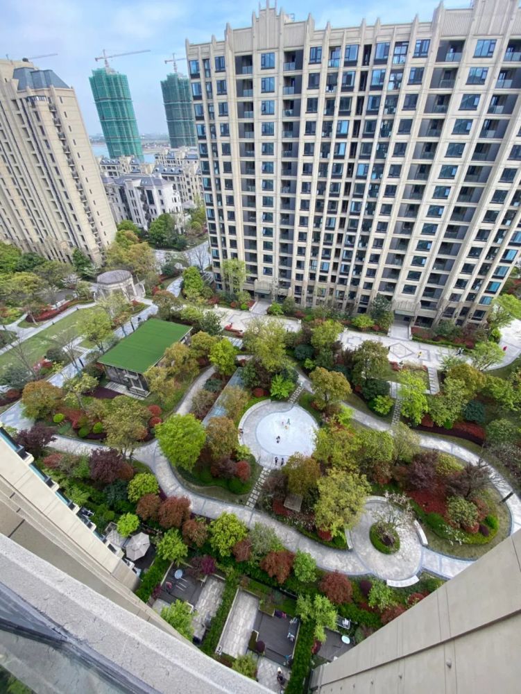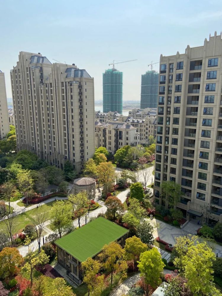从窗口拍下的兰香湖一景(远处两幢绿色在建高层建筑中间);网友摄于4月8日