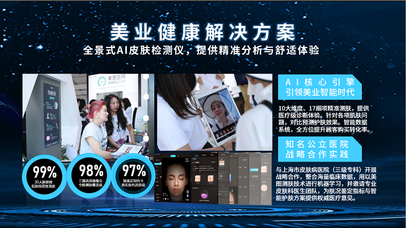 能够在各类复杂情况下进行实时、稳定、准确的人脸识别分析,同时,更拥有皮肤分析、头发分析两大独加技术,满足用户不同的变美需求。