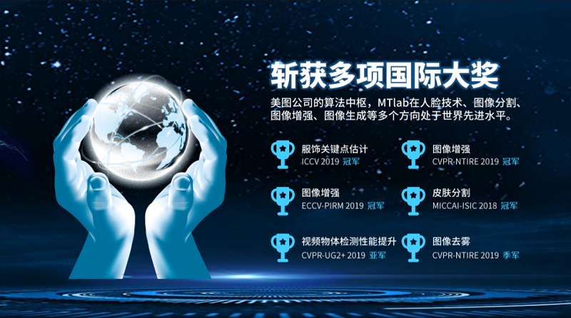 美图影像实验室(MTlab)是美图公司致力于计算机视觉、机器学习、增强现实、云计算等领域的算法研究、工程开发和产品化落地的团队。2019年4月,美图影像实验室上线“AI开放平台”,进一步开放其技术能力,为线上线下各行业提供经过市场检验的专业AI服务。目前,其API累计处理照片数达43亿,并获得96个技术专利和8项独家技术。此外,作为美图公司的算法中枢,MTlab在人脸技术、图像分割、图像增强、图像生成等多个方向处于世界先进水平,并斩获多项国际大奖。
